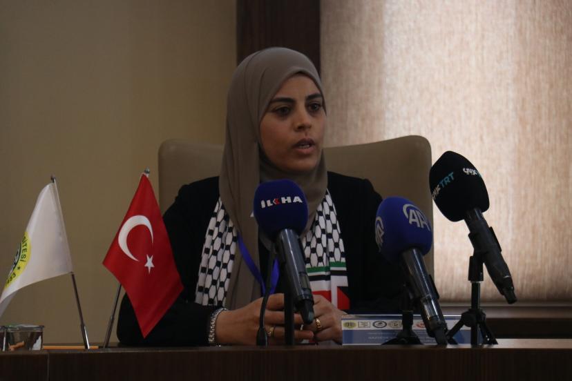 Filistinli esir Hasan Seleme'nin eşi Gufran Zamel, "Bugün huzurlarınızda sadece sıradan bir hikaye anlatmak için bulunmuyorum. Aksine, Filistinli kadının hem zindanların içinde hem de dışında yaşadığı canlı bir gerçeği, bireysel acıyı aşan ve her Filistinli eve yayılan toplu bir ıstırabı dile getirmek için buradayım. Şu anda bizler burada otururken, parmaklıklar ardında aralarında akademisyenlerin, doktorların, öğretmenlerin, avukatların ve hatta reşit olmayan kız çocuklarının bulunduğu 86 Filistinli kadın tutsak bulunmaktadır. Ancak tablo sadece bunlarla sınırlı değil. Bugün yaklaşık 10 bin Filistinli esir gerçeğiyle karşı karşıyayız; bu da demek oluyor ki her gün korku, kaygı ve öldürücü bir bekleyiş içinde yaşayan 10 bin Filistinli aile var demektir. Her esirin arkasında uykusuz bir anne, yol gözleyen bir eş ve babalarının yokluğunda, belki de hiç gelmeyecek bir kavuşma umuduyla büyüyen çocuklar var." dedi.