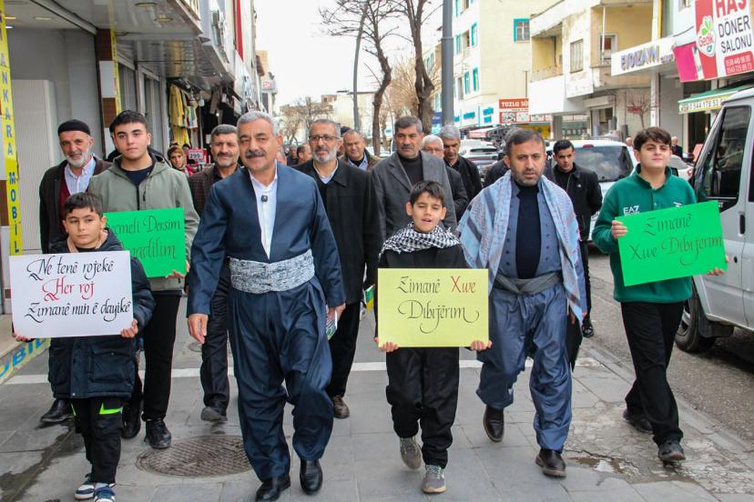 HÜDA PAR Batman İl Teşkilatı, Kürtçe anadilinin önemine dikkat çekmek ve ortaokullarda Kürtçeyi seçmeli ders olarak tercih etmeyi teşvik etmek amacıyla yürüyüş düzenledi.