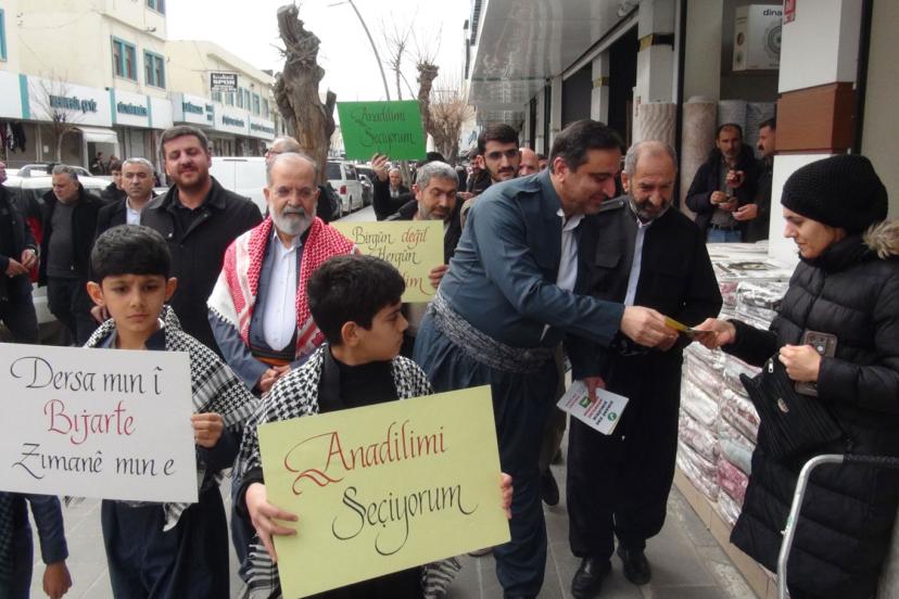 Partililer, halka Kürtçeye sahip çıkılması ve Kürtçe seçmeli derslerin tercih edilmesi için broşürler dağıttı.
