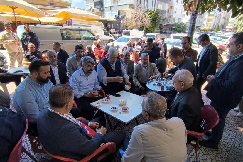 HÜDA PAR Mersin Milletvekili Faruk Dinç, Filistin’deki idam kararlarına tepki amacıyla gerçekleştirilen basın açıklamasının ardından Filistin’e Destek Platformu bünyesinde faaliyet gösteren sivil toplum kuruluşu temsilcileri ile bir çay bahçesinde buluştu.
