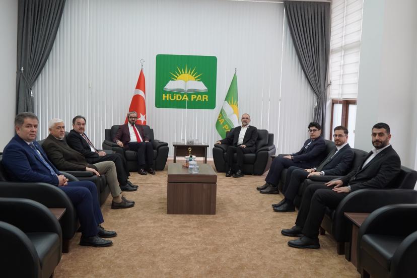 HÜDA PAR'ın kabul heyetinde, HÜDA PAR Genel Başkan Vekili İshak Sağlam, Genel İdare Kurulu Üyeleri Hasan Bozdaş ve Hamdullah Er yer aldı.