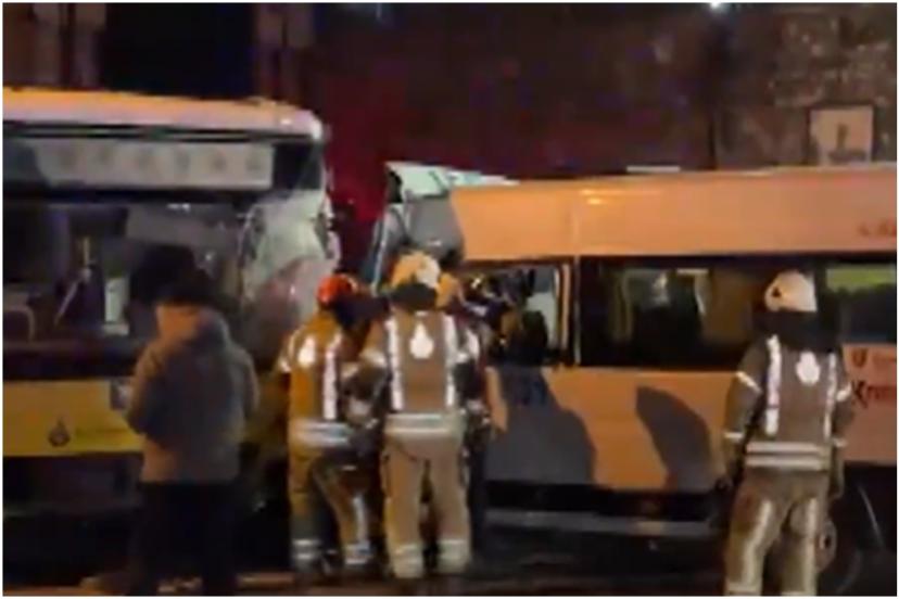 İstanbul Beşiktaş'ta çarpışan İETT otobüsü ile servis minibüsünün şoförleri yaralandı.