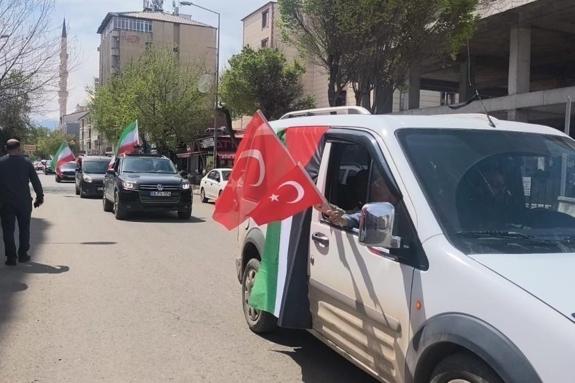 Iğdır’da "zalimin karşısındayız" temasıyla bir araya gelen gönüllüler, Topçular Mahallesi Vali Yolu üzerinde toplanarak geniş katılımlı bir konvoy düzenledi. Yaklaşık 500 aracın yer aldığı etkinlikte Türk, İran, Azerbaycan ve Filistin bayraklarıyla süslenen araçlar, şehir merkezinde sloganlar eşliğinde tur attı. Konvoy sırasında bazı araçların üzerinde İsrail Başbakanı Binyamin Netanyahu ile eski ABD Donalo Başkanı Donald Trump’ın fotoğraflarının bulunduğu temsili tabutlar taşındı. Konvoy cadde ve sokaklarda yoğun ilgi görürken, etkinliğe katılan vatandaşlar, birlik ve dayanışma mesajları verdi.