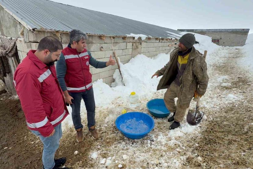 İlçe Tarım ve Orman Müdürlüğü ekipleri suların donduğu bölgedeki hayvanlara su götürdü