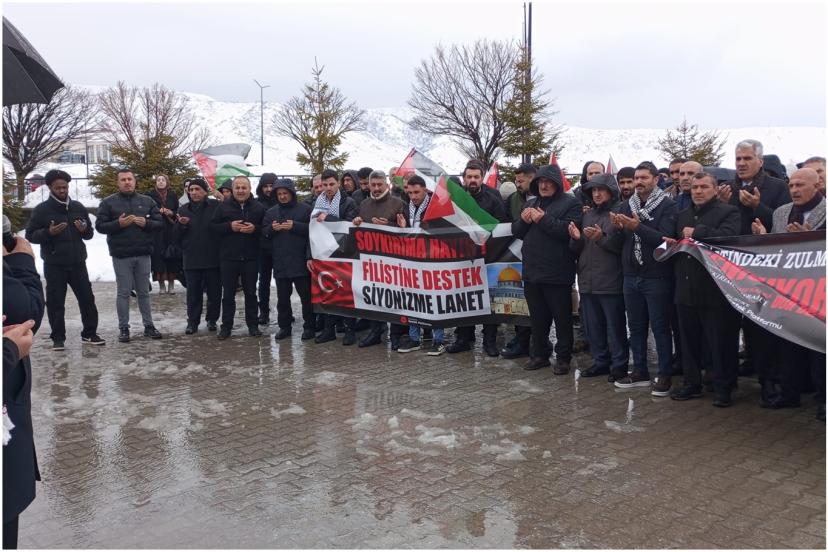 Bitlis Filistin Dayanışma Platformu ve Bitlis Eren Üniversitesi öğrenci kulüpleri öncülüğünde, Gazze'de yaşanan soykırım ve Filistinli esirlere yönelik idam kararlarına dikkat çekmek amacıyla basın açıklaması gerçekleştirildi.