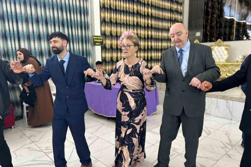 Yaklaşık 10 yıldır Muğla’nın Marmaris ilçesinde turizm sektöründe çalışan Vanlı Musa Aslan, tatil için ailesiyle birlikte bölgeye gelen İskoçyalı Leanne ile tanıştı. Bir süre devam eden arkadaşlıklarının ardından evlilik kararı alan çift, düğün merasimi için damadın memleketi Van’ı tercih etti. İskoçya’dan Van’a gelen gelin ve ailesi, kentin tarihi ve kültürel dokusuna kısa sürede uyum sağladı. Van’daki bir düğün salonunda gerçekleştirilen merasimde, İskoç gelin yöresel kıyafetlerle davetlilerin ilgi odağı oldu. Van geleneklerine göre yapılan düğünde, yabancı gelin ve ailesinin halaylara eşlik etmesi renkli görüntüler oluşturdu. Tören, davetlilerin tebrikleri ve takı merasiminin ardından sona erdi.
