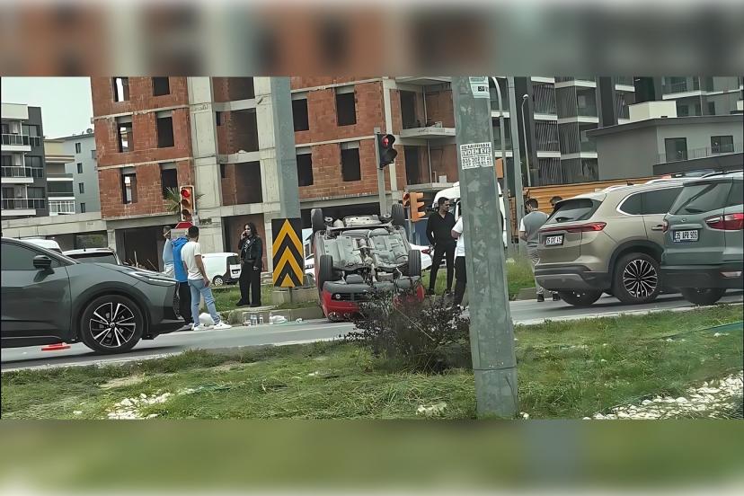 İzmir'de takla atan aracın sürücüsü hafif yaralandı