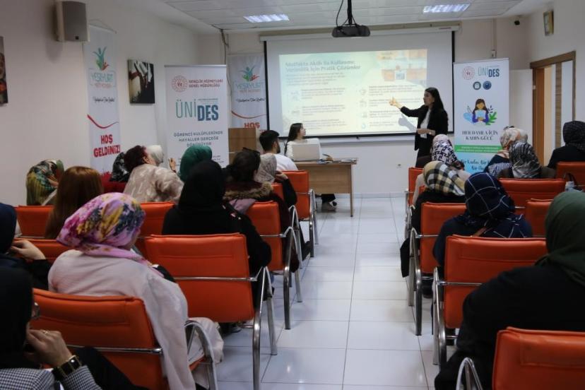 Üniversite Öğrenci Toplulukları İş Birliği ve Destek Programı (ÜNİDES) kapsamında hazırlanan "Her Damla İçin Kadın Gücü" projesi çerçevesinde kadınlara su tasarrufu ve su verimliliği konularında bilgilendirme yapıldı.