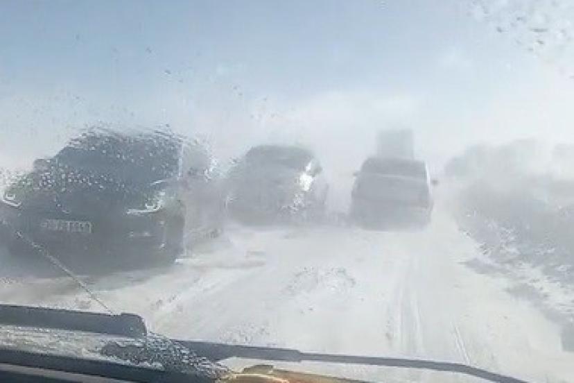 Kars’ta şiddetli tipi nedeniyle Kars-Göle karayolunda onlarca araç yolda mahsur kaldı.