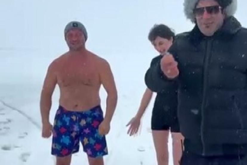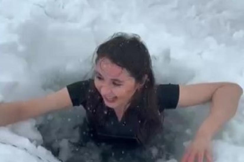 Tamamen buzla kaplanan Kars Çıldır Gölü, sıra dışı bir ana sahne oldu. Hava sıcaklığının sıfırın altında 23 dereceyi gördüğü bölgede, bir kadın ziyaretçi buzları kırdırarak dondurucu suya girdi.