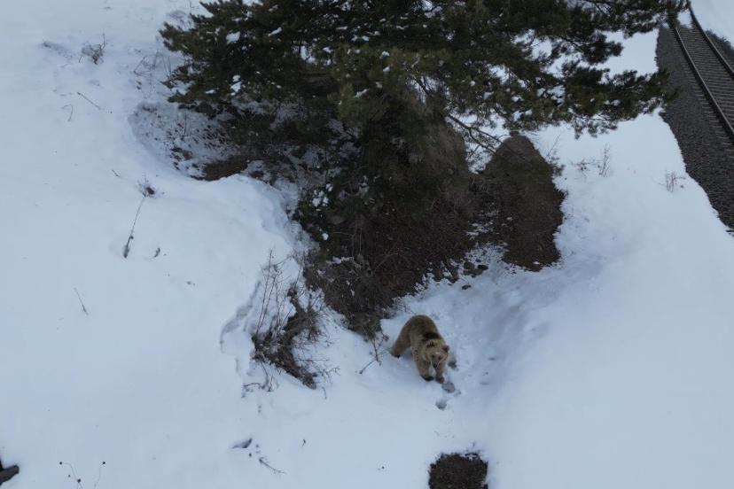 Kars’ta yiyecek arayışına çıkan bir boz ayı, havada süzülen dron ile karşılaşınca ilginç anlara sahne oldu. O anlar saniye saniye kayıt altına alındı.