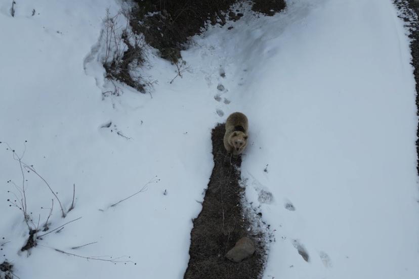 Kars’ta drone ile karşılaşan boz ayı kamerada: Merak, tedirginlik ve kaçış