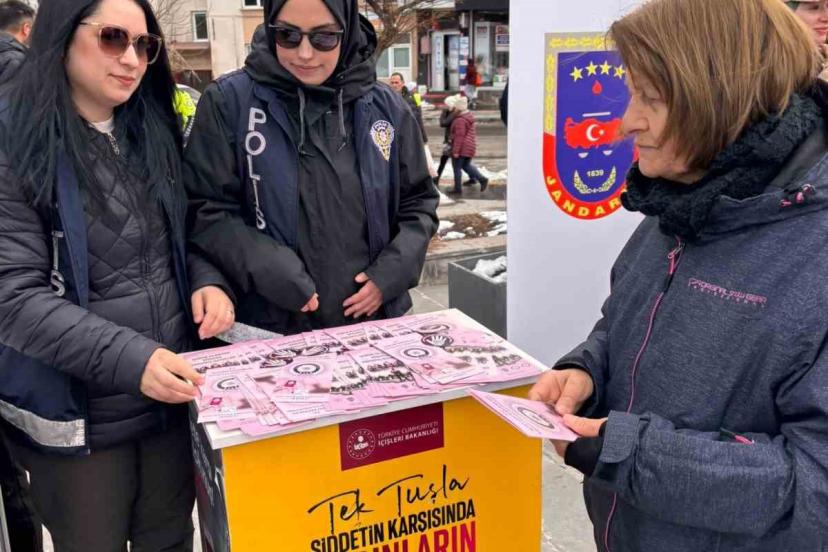 Kars İl Emniyet Müdürlüğü Asayiş Şube Müdürlüğü’ne bağlı Aile İçi ve Kadına Şiddetle Mücadele Büro Amirliği ekipleri tarafından kadına yönelik şiddetle mücadele kapsamında farkındalık oluşturmak amacıyla bilgilendirme çalışması gerçekleştirildi.