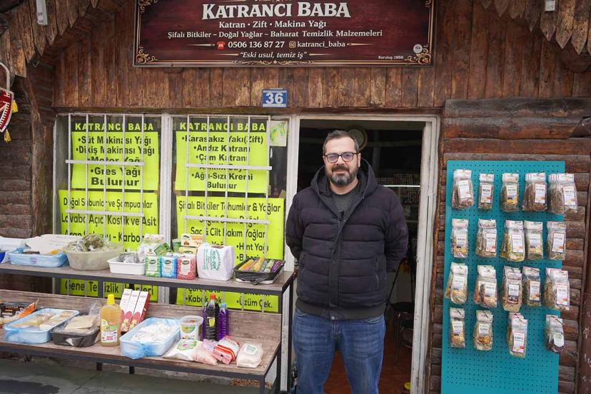 Baba mesleğini devam ettirdiğini belirten Tevfil Ünalacak, “Konya’da, Mevlana’ya çok yakın bir bölgede esnafız. Burada katran işi yapıyoruz; ana işimiz budur. Dedemden beri yaptığımız ticaret bu şekilde devam ediyor. Babamdan devraldığım işletmede çam katranı, çam ardıç katranı ve sedir katranını müşterilerimize sunuyoruz.” dedi.