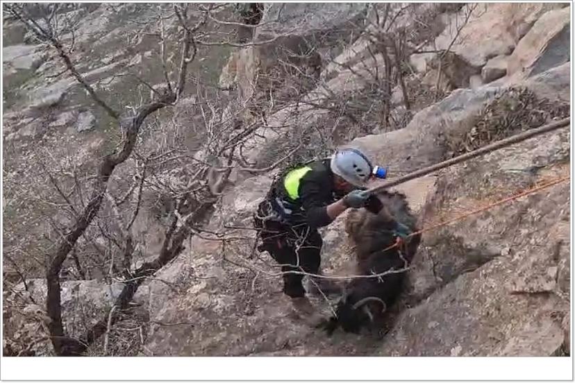 Siirt’in Eruh ilçesine bağlı Kalender Köyü kırsalında sarp kayalıklarda mahsur kalan iki keçi, ekiplerin yürüttüğü dikkatli çalışma sonucu sağ salim kurtarılarak sahibine teslim edildi.