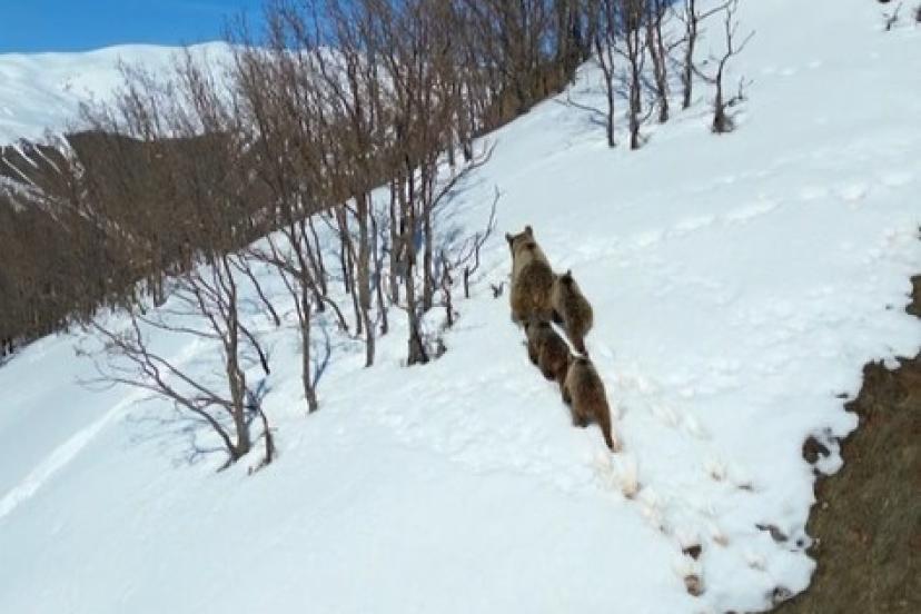 Bingöl’de doğada nadir rastlanan anlardan biri kaydedildi. Kış uykusundan uyanan bir bozayı ve üç yavrusu, karla kaplı arazide dolaşırken görüntülendi. Dron ile doğa gezgini Doğuş Başak tarafından kaydedilen görüntülerde anne ayının yavrularıyla birlikte temkinli şekilde ilerleyip, bir süre sonra gözden kayboldukları görüldü.