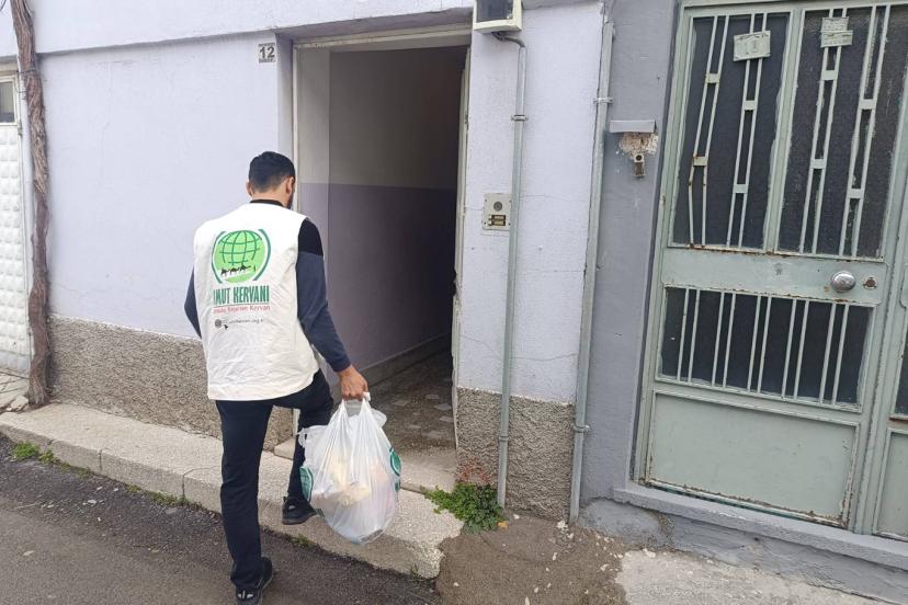 Temsilcilik binasında gönüllüler tarafından özenle hazırlanan ve içerisinde temel gıda maddelerinin yer aldığı yardım paketleri, belirlenen adreslere ulaştırıldı.