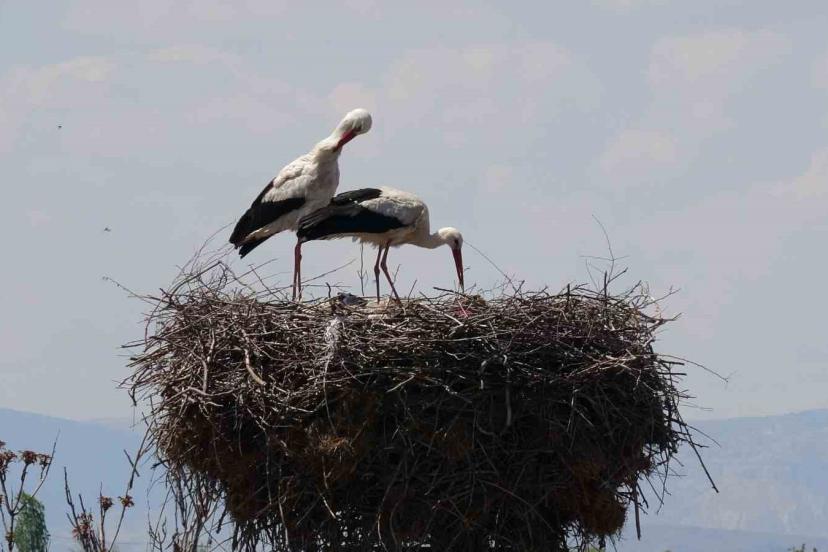 Malatya’da baharın müjdecisi leylekler yuvalarına dönüyor