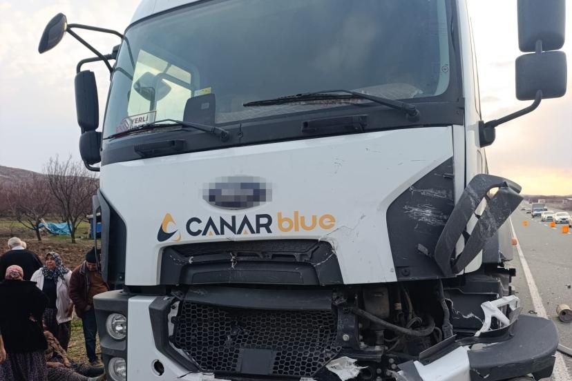 Malatya’da kontrolden çıkan kamyonun hafif ticari araca çarpması sonucu 1 kişi hayatını kaybettiği, 1 kişinin yaralandığı kaz...
