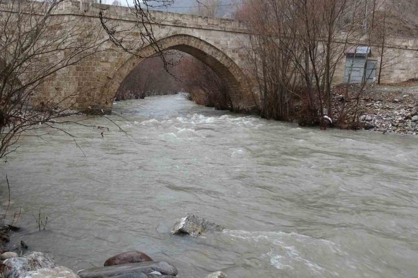 Malatya’nın Arapgir ilçesinde etkili olan sağanak ve kar yağışı, Kozluk Çayı’nın taşmasına neden oldu.