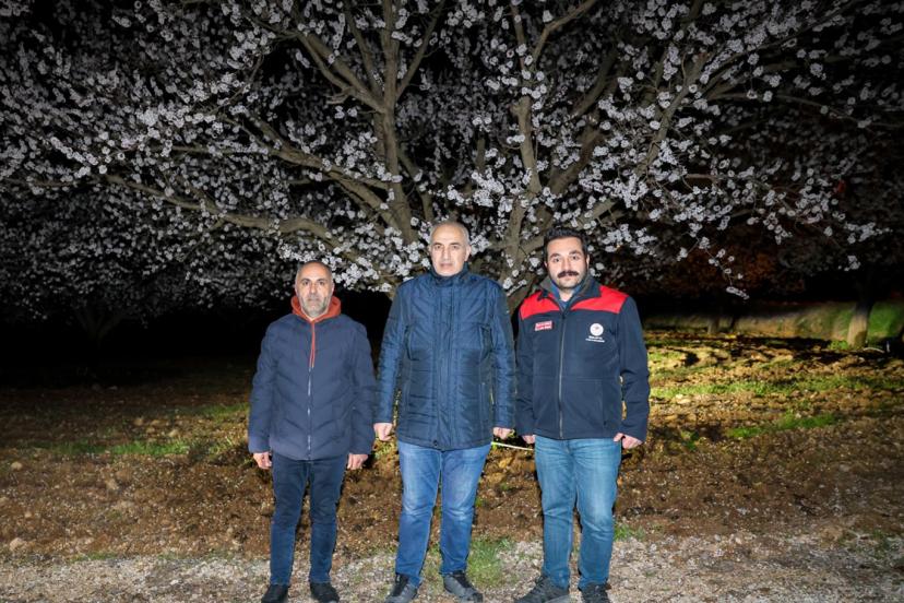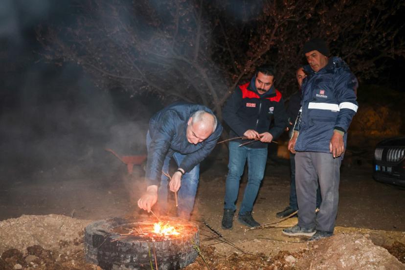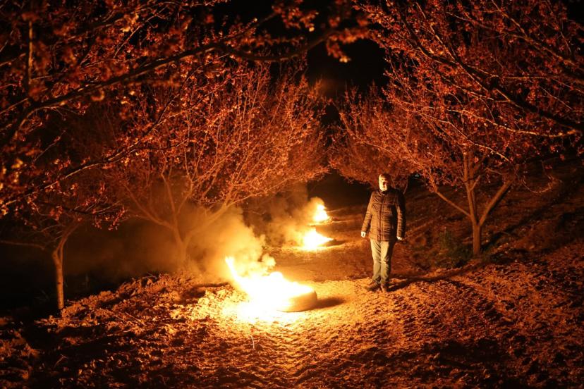 Kar yağışının ardından zirai don riskine karşı harekete geçen Malatyalı çiftçiler, gece saatlerine kadar ateş yakarak ürünlerini korumaya çalışırken, Tarım ve Orman Müdürlüğü ekipleri de sahada incelemelerde bulundu.