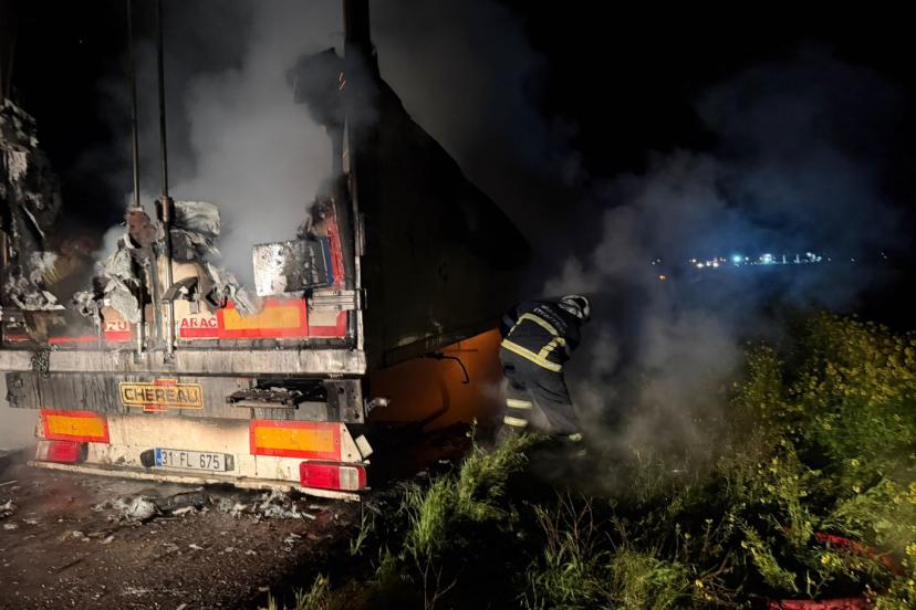 Sürücüsünün ismi öğrenilemeyen 31 FL 675 plakalı tır'ın boş dorsesinde, seyir halindeyken henüz belirlenemeyen nedenle yangın çıktı.