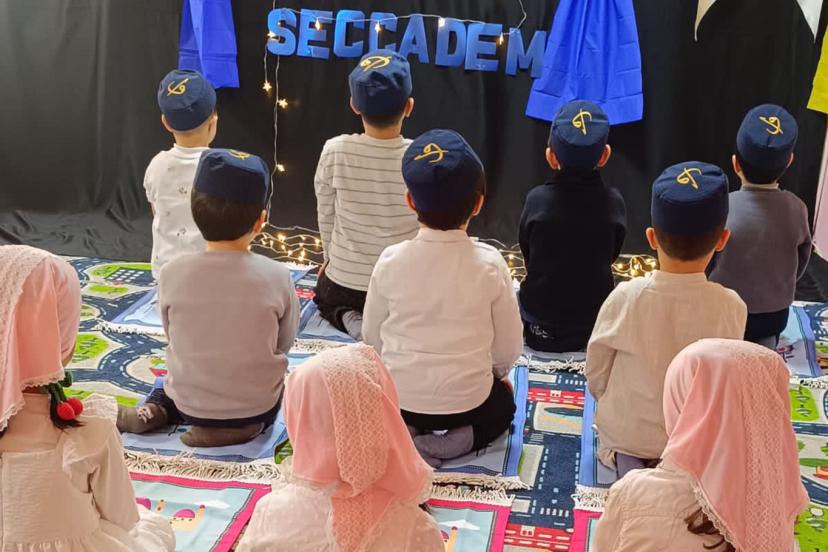 Küçük yaşta ibadet bilinciyle tanışan öğrenciler, seccadeleriyle ilk namaz hatıralarını yaşarken program boyunca neşeli ve anlamlı anlar yaşandı.
