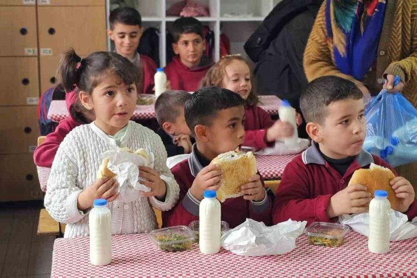 Müdür Bozyel’den köy okulu öğrencilerine döner ve ayran sürprizi