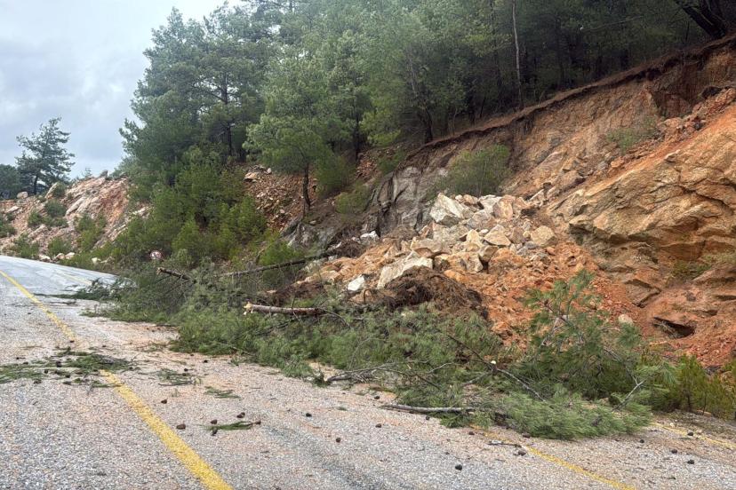 MUĞLA'nın Milas ilçesinde sağanak sonrası toprak kayması meydana geldi. Ekipler, kısmen kapanan yolu temizlemek için çalışma başlattı.