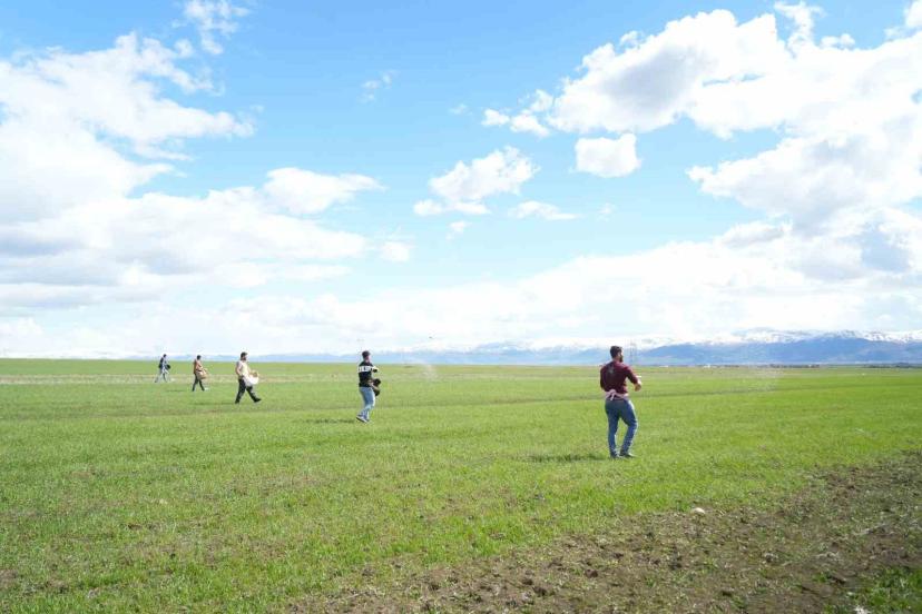 Muş’ta çiftçiler tarlaya indi: Gübreler imece usulü ile serpildi