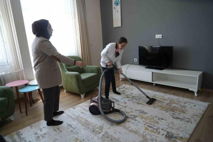 Özel öğrenci Tuana Hamzaoğlu da, "Ben burada evi süpürdüm, diğer arkadaşlarım bulaşıkları yıkadı. Hep birlikte evi temizleyip toparladık. Burada öğrendiklerimi evde de uyguluyorum; anneme yardım ediyorum. Kendi odamı topluyorum. Kahvaltı yaptıktan sonra sofrayı kaldırıyor, bardakları ve ekmekleri de topluyorum. Bunların hepsini okulda öğrendim, öğretmenimiz bize burada öğretti" şeklinde konuştu.