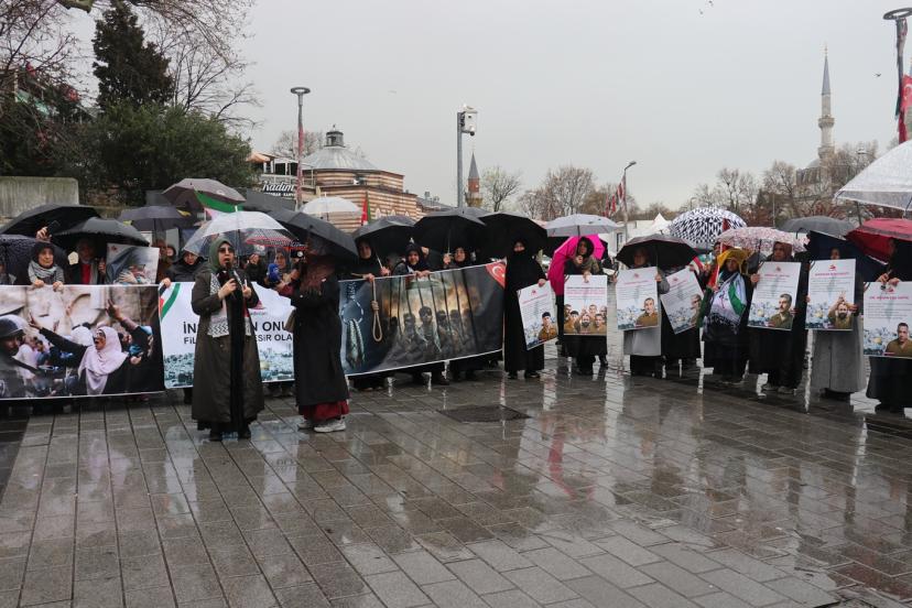 Cuma namazının ardından Üsküdar Mihrimah Sultan Camii önünde yoğun katılımla gerçekleştirilen programa; Dünya Müslüman Alimler Birliği Kudüs ve Filistin Komisyonu Başkanı Dr. Mervan Ebu Ras, Filistin konusunda çalışmalar yapan Mısırlı Dr. Emel Halife ve Filistinli Gazeteci Muin Naim konuşmacı olarak katıldı.