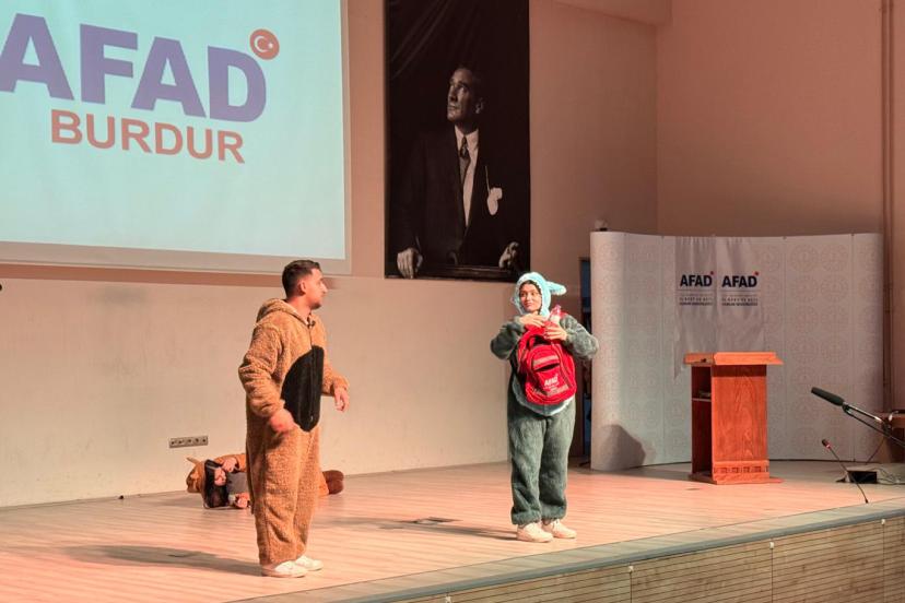 BURDUR'da İl Milli Eğitim Müdürlüğü ile Afet ve Acil Durum Müdürlüğü (AFAD) tarafından imzalanan protokol çerçevesinde ilkokul öğrencilerinin afetlerde doğru davranış bilincini geliştirmek amacıyla tiyatro oyunu sahnelendi.