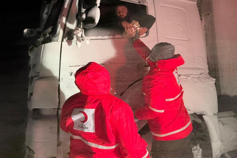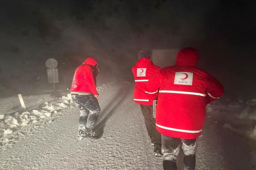 Olumsuz hava koşullarından dolayı yolda kalan ağır tonajlı araçların şoförleri için harekete geçen Kızılay Doğubayazıt Şubesi ekipleri bölgeye giderek yolda kalan sürücülere kumanya desteğinde bulundu.