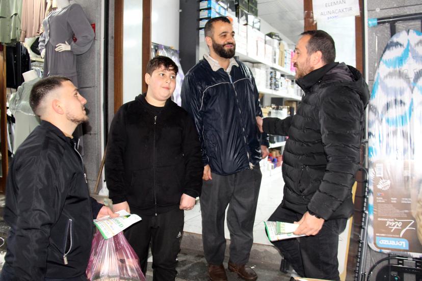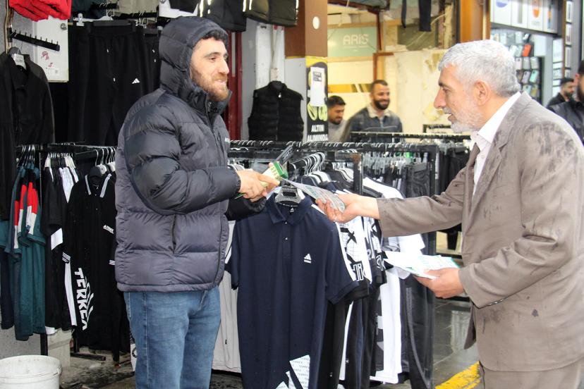 Diyarbakır'ın dört bir yanında programa davet ve bilgilendirme broşürleriyle çalışmalarını yürüten Peygamber Sevdalıları, sabah saatlerinde kenti etkisi altına alan sağanak yağış altında Bağlar İlçesinde esnafı ziyaret etti.