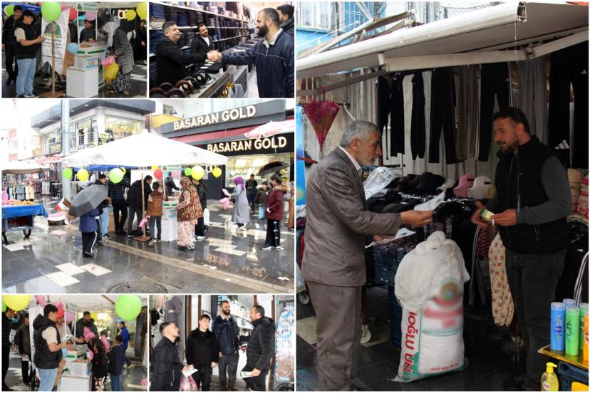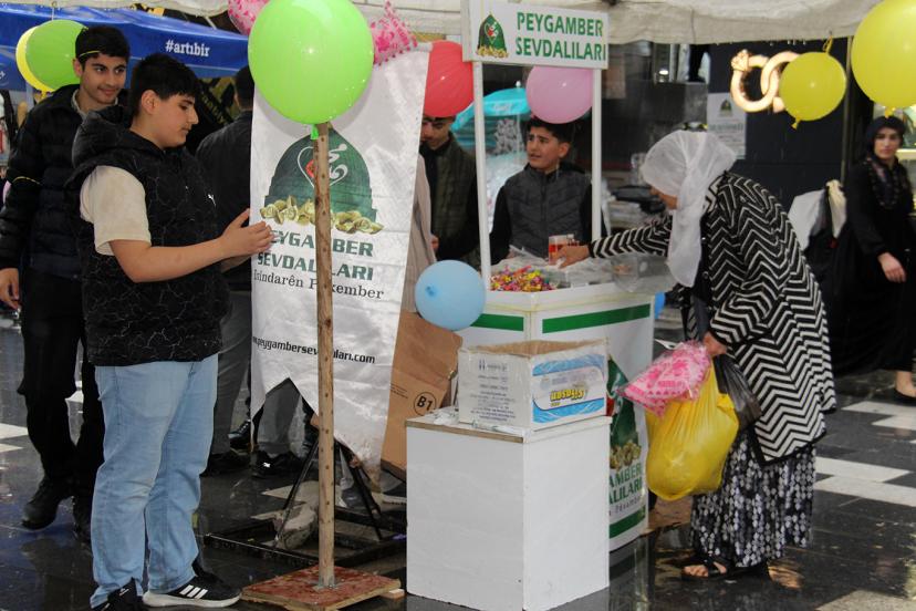 Peygamber Sevdalıları bir yandan kurdukları stantta alıverişe gelen Diyarbakırlıları etkinliğe davet ederken diğer taraftan semt esnafını ziyaret ederek broşür dağıttı, mevlit lokumu ikram etti. (İLKHA)