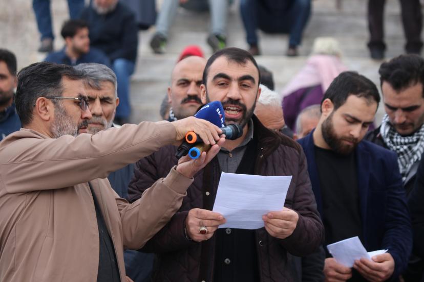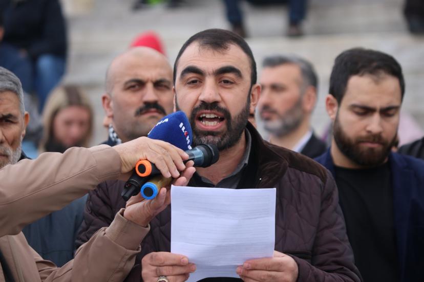 STK'lar adına basın açıklamasını okuna Erkan Demir, Gazze, Kudüs ve Mescid-i Aksa'da katmerleşen zulmün artık coğrafyamızı da kuşattığını, işgalin hiçbir değer tanımadan saldırılarına devam ettiğini hatırlattı.