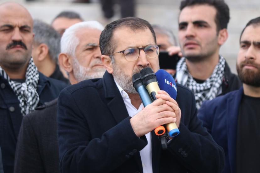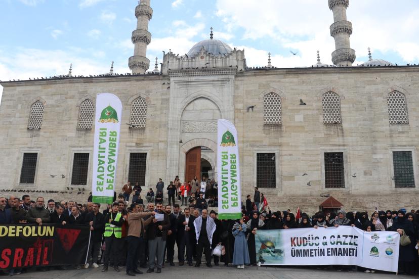 Egemen bir ülke olan İran'a dünyanın gözü önünde hukuk tanımaz ve hunhar bir şekilde bombalar yağdırıldığını hatırlatan Demir, "Çıkarlar, menfaatler ve programları tutmadığında da burnu yerde sürtmüş bir şekilde ateşkes masasına gelmektedir. İsrail'in anladığı tek dil güç ve kuvvettir. Ancak güç ve kuvvet ile Dünya siyonizim illetinden kurtulacaktır. İşgal rejimi, 28 Şubat 2026'dan beri, Mescid-i Aksa'da namaz kılınmasına engel olmaktadır. Müslümanların ilk kıblesi Mescid-i Aksa Ramazan ayı boyunca kapatıldı. Aksa'nın kapısına bayramda da pranga vuruldu. Siyonist çeteler, Harem-i Şerif yakınlarında namaz kılan Müslüman kardeşlerimize pervasızca saldırmaktadır. İşgal rejiminin Mescid-i Aksa'da namaz kılınmasına engel olması Kudüs'ün tamamını işgal etme girişimidir. Arz-ı mev'ud projesi devreye sokulmuş, artık işgaller Kudüs ile sınırlı kalmamaktadır. Kudüs ve Mescid-i Aksa özgürlüğüne kavuşursa tüm ümmet özgürlüğüne kavuşmuş olacaktır. Bu yüzden Aksa'yı savunmak ve Kudüs'ü özgürleştirmek tüm ümmetin ortak sorumluluğundadır. Biz öyle biliyoruz ki bugün İran'a olan saldırıların temelinde de Filistin davasına yaptıkları sahiplenmeden kaynaklanmaktadır. Ve bizim bunu çok iyi bilmemiz gerekir ki İster Kudüs-Aksa davasını savunalım ister yerimizde duralım, onlar asla bizden razı olmayacaktır." dedi.