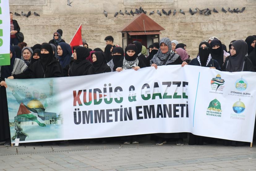 Küresel şer ittifakına karşı Müslümanların yanında durmak amacıyla Peygamber Sevdalıları ve Özgür Kudüs Platformu tarafından düzenlenen basın toplantısında; Gazze, Kudüs ve Mescid-i Aksa'da katmerleşen zulmün İslam coğrafyasına yayıldığı hatırlatılarak Kudüs'ün özgürlüğü için tüm Müslümanların üzerine görev düştüğü belirtildi.