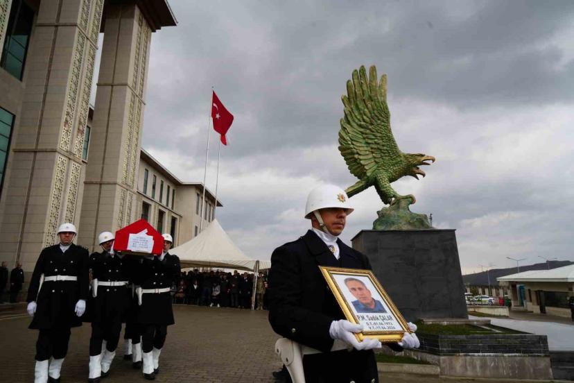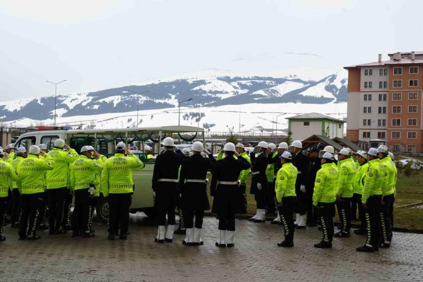 Erzurum Emniyet Müdürlüğü personeli, vefat eden mesai arkadaşları Trafik Polisi Sadık Çalar’ı gözyaşı ve dualarla memleketi Çankırı’ya uğurladı.