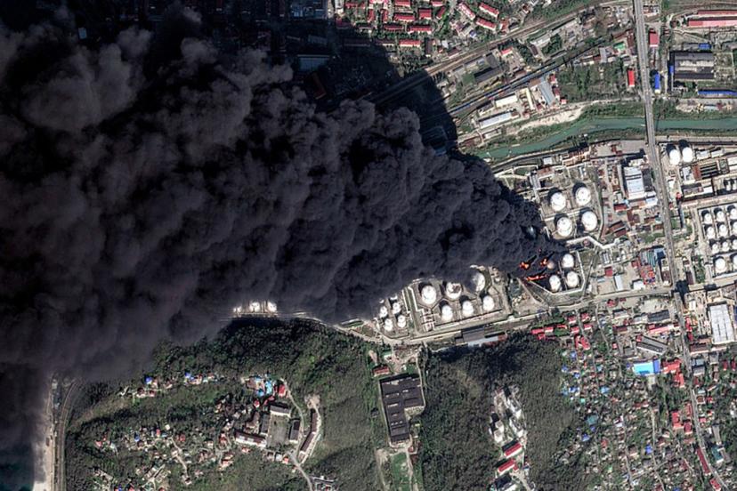 Saldırının ardından fabrikanın üzerinde yoğun bir duman yükseldiği görüldü.