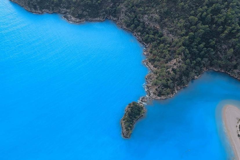 Dünyaca ünlü Ölüdeniz'in rengi iki gündür etkili olan sağanağın ardından güneşli havayla birlikte turkuaza döndü. Macera tutkunları, Babadağ’daki pistlerden tandem pilotlar eşliğinde yamaç paraşütü yaparak Ölüdeniz’in eşsiz manzarasını kuş bakışı izledi. Bazı turistler de turkuaza dönüşen deniz manzarası eşliğinde hatıra fotoğrafı çektirdi. Tandem yamaç paraşütü pilotu Mehmet Gönüllü tarafından GoPro ve fotoğraf makinası ile çekilen havadan görüntülerle, Ölüdeniz Plajı’ndaki renk değişimi görüntülendi.