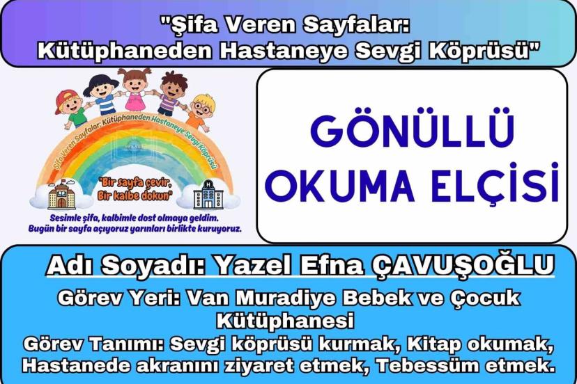 Van’ın Muradiye ilçesindeki Bebek ve Çocuk Kütüphanesi, kütüphanecilik anlayışını dört duvarın dışına taşıyan "Şifa Veren Sayfalar: Kütüphaneden Hastaneye Sevgi Köprüsü" projesini hayata geçirdi.