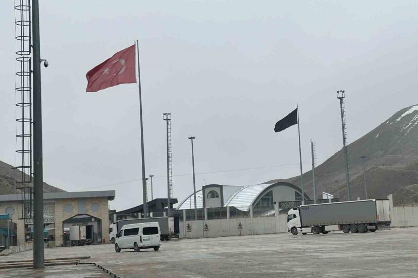 İran dini lideri Ayetullah Ali Hamaney’in ABD-İsrail saldırılarında hayatını kaybettiğinin duyurulduğu tarihten bu yana Kapıköy Gümrük Kapısı’na asılan siyah bayrağın dalgalanmaya devam ettiği görüldü.