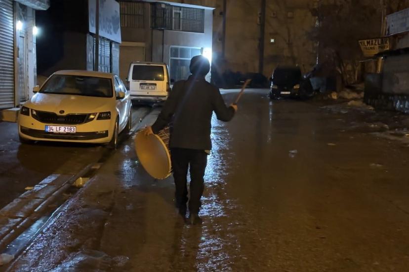 11 ayın sultanı Ramazan-ı Şerif’in ilk sahurunda, ilçe sakinlerinin bir kısmı modern telefon alarmlarıyla uyanmayı tercih ederken, bir kısmı da emektar davulcu Salih Erdoğan’ın tokmağından çıkan sesle uyandı. Hava sıcaklığının sıfırın altına düştüğü ilçede mesaisine başlayan Erdoğan, sokakları dolaşarak vatandaşları sahura kaldırdı.