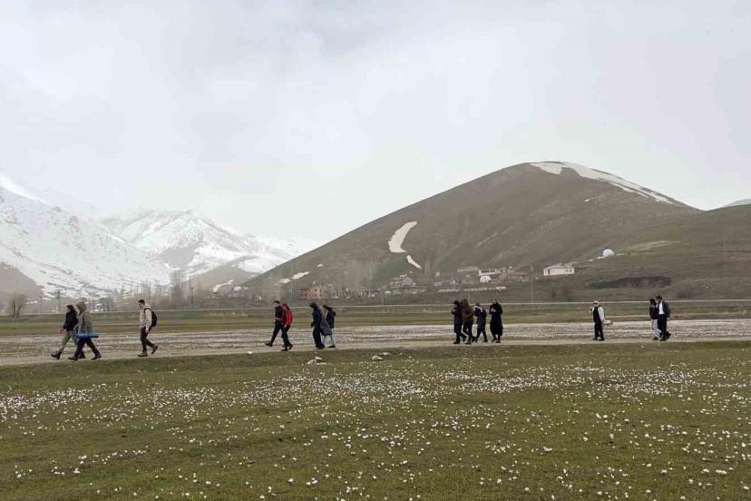 Üniversite öğrencilerinden çiğdemler arasında doğa yürüyüşü