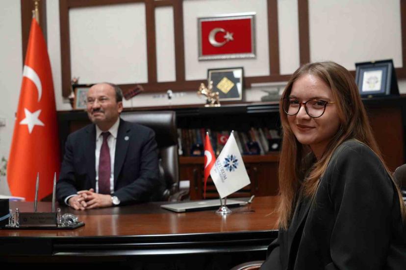 Erzurum Teknik Üniversitesi (ETÜ) İngiliz Dili ve Edebiyatı 4. sınıf öğrencisi Gizem Nur Ünlü, Rektör Prof. Dr. Bülent Çakmak...
