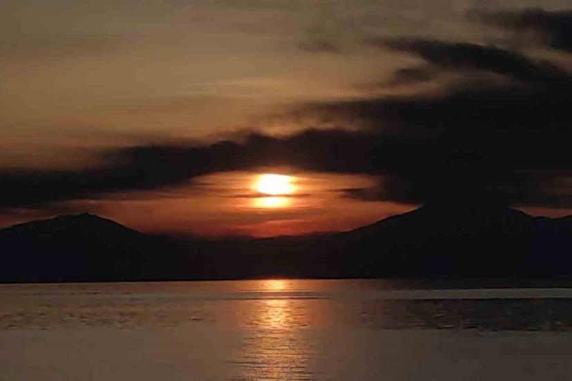 Doğu’nun incisi Van’da bugün, güneşin batışıyla birlikte gökyüzünde adeta bir renk cümbüşü yaşandı. Van Gölü üzerinden süzülerek batan güneş, yerini gümüş bir tepsi gibi doğan aya bıraktı. Akşam saatlerinde Van Kalesi ve Edremit sahil şeridinde bir araya gelen vatandaşlar, gün batımının eşsiz kızıllığına tanıklık etti. Güneşin Van Gölü’nün sodalı sularına vuran son ışıkları, ufuk çizgisini ateş kırmızısına boyadı. Güneşin kaybolmasıyla birlikte Erek Dağı’nın kuzeyin yükselen dolunay, kentin üzerine bir ışık huzmesi yaydı.