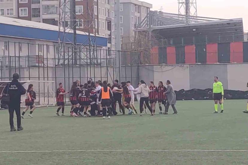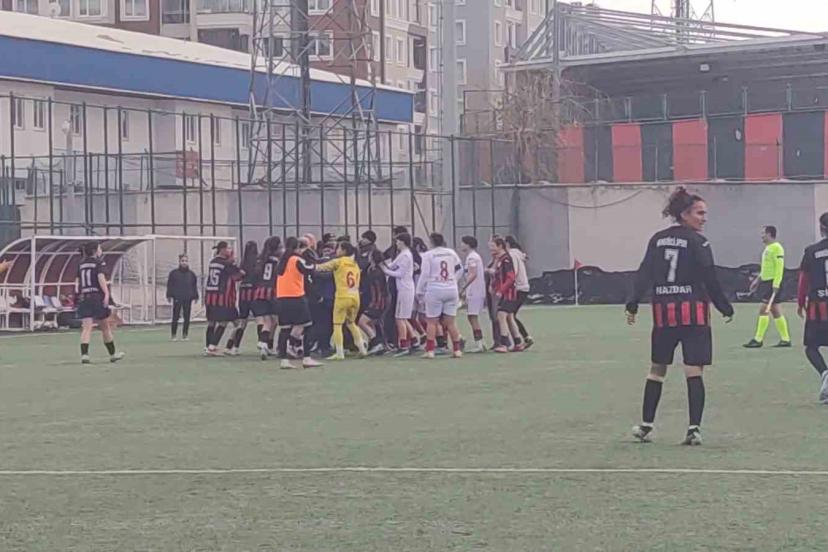 TFF Kadınlar 2. Lig’de Vangücü SK’nın Siverek Kadın SK’yı 2-0 yendiği maçın bitiş düdüğüyle birlikte yumruklar ve tekmeler ko...