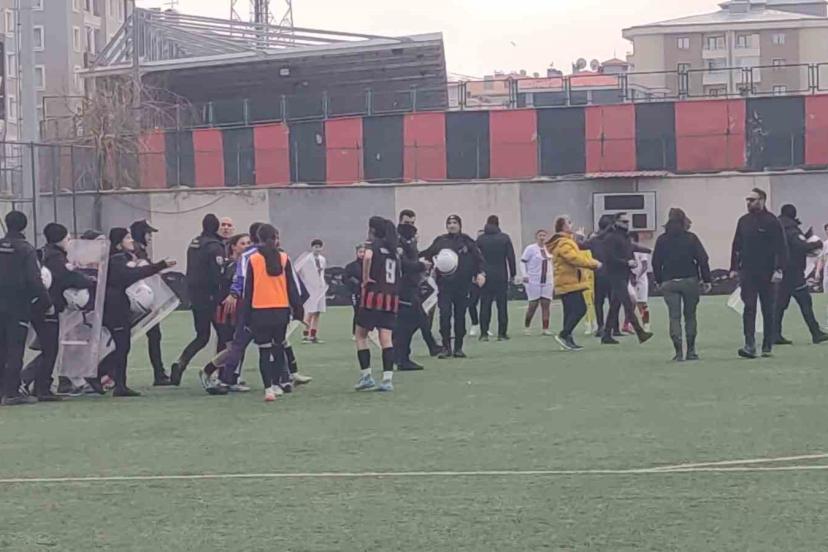 TFF Kadınlar 2. Lig’de Vangücü SK’nın Siverek Kadın SK’yı 2-0 yendiği maçın bitiş düdüğüyle birlikte yumruklar ve tekmeler konuştu.